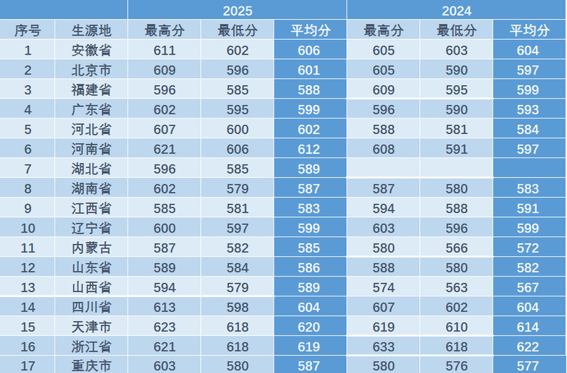 注:此表未出现的生源地为招生计划外地区,空白表格代表该年该地无招生计划。
